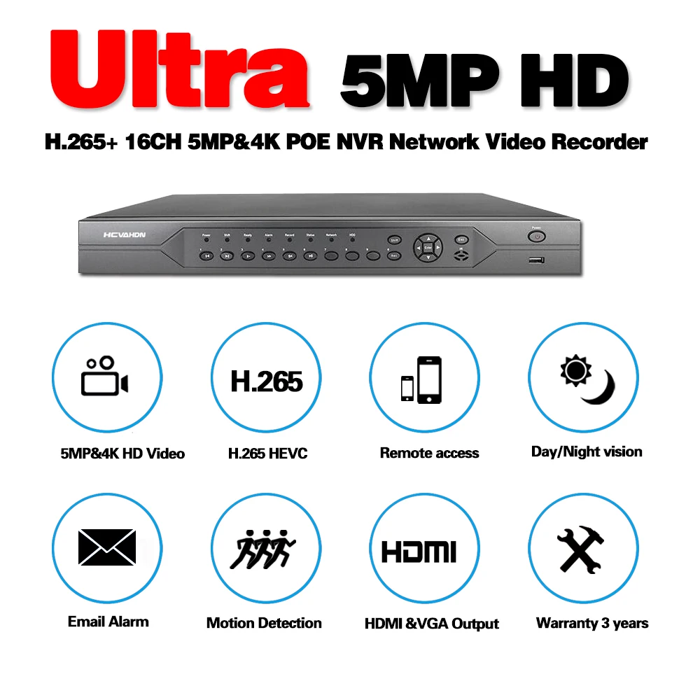 BEST QUALITY H.265 H.264 16CH 5MP 3MP 2MP 8CH 4K 48V POE NVR P2P ONVIF 1080P Network Video Recorder for IP Camer