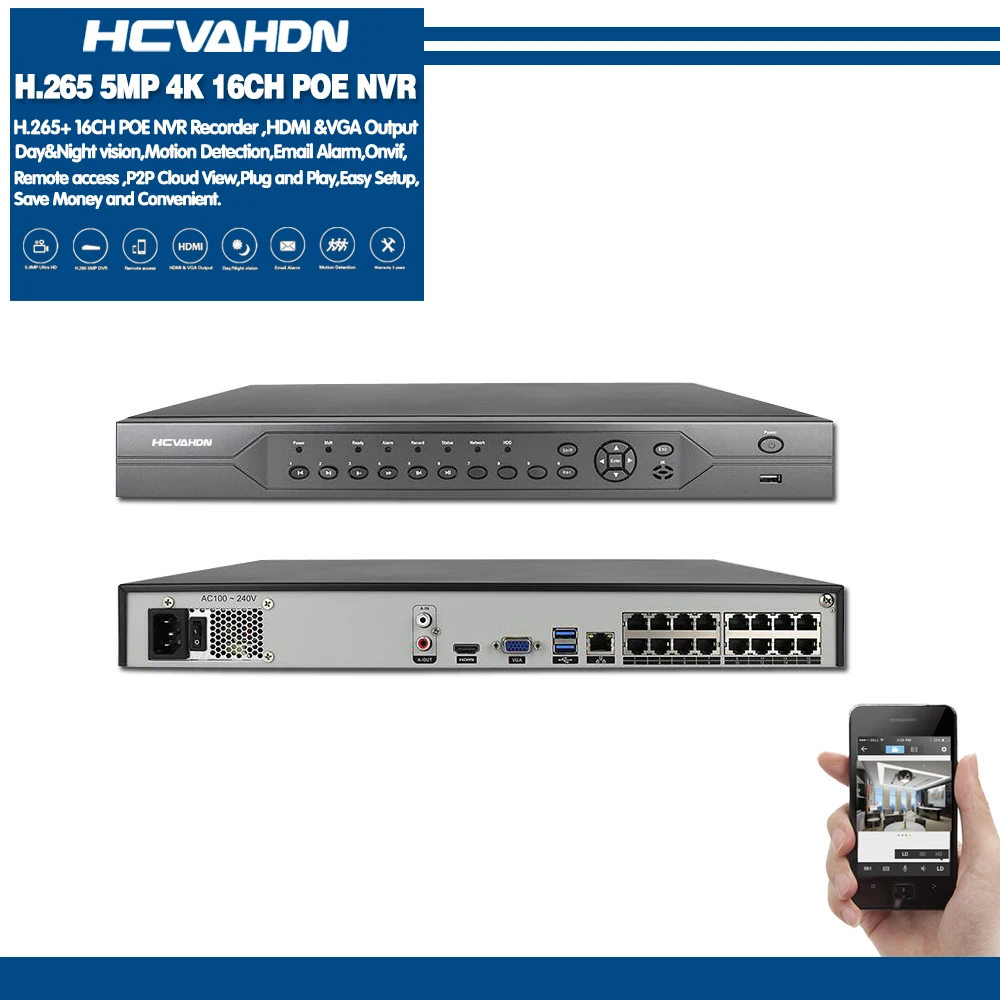 H.265 H.264 16CH 5MP 3MP 2MP 8CH 4K 48V POE NVR P2P ONVIF 1080P Network Video Recorder for IP Camer