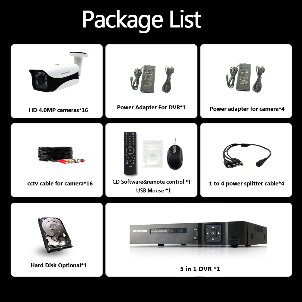 AHD 16CH CCTV System 1080P HDMI DVR 16pcs 4MP Indoor Outdoor Weatherproof CCTV Camera Security Syst