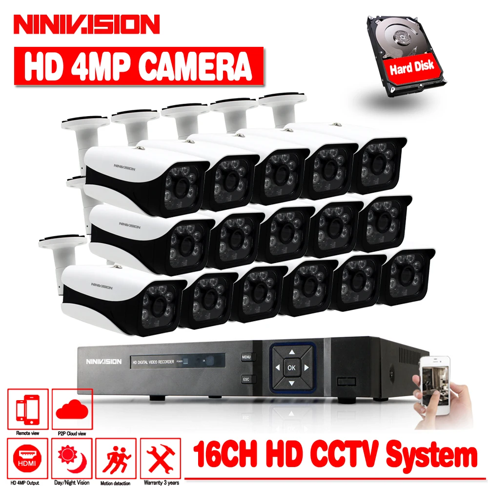 Review AHD 16CH CCTV System 1080P HDMI DVR 16pcs 4MP Indoor Outdoor Weatherproof CCTV Camera Security Syst