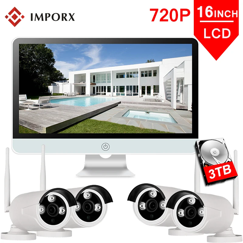 BEST 4CH 720P Wireless NVR Wifi CCTV System 16" LCD Monitor Screen 1MP Outdoor Home Security P2P Wifi Ca