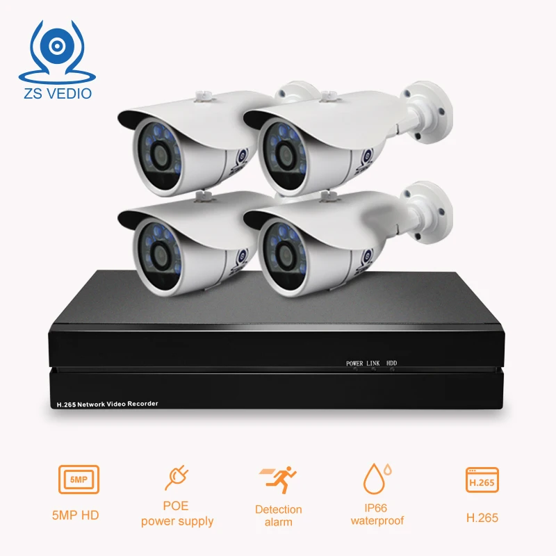 ZSVEDIO 4CH POE 5.0MP IP Camera Kit 8CH NVR 6IR Night Vision CCTV Camera 48V P2P Outdoor Waterproof