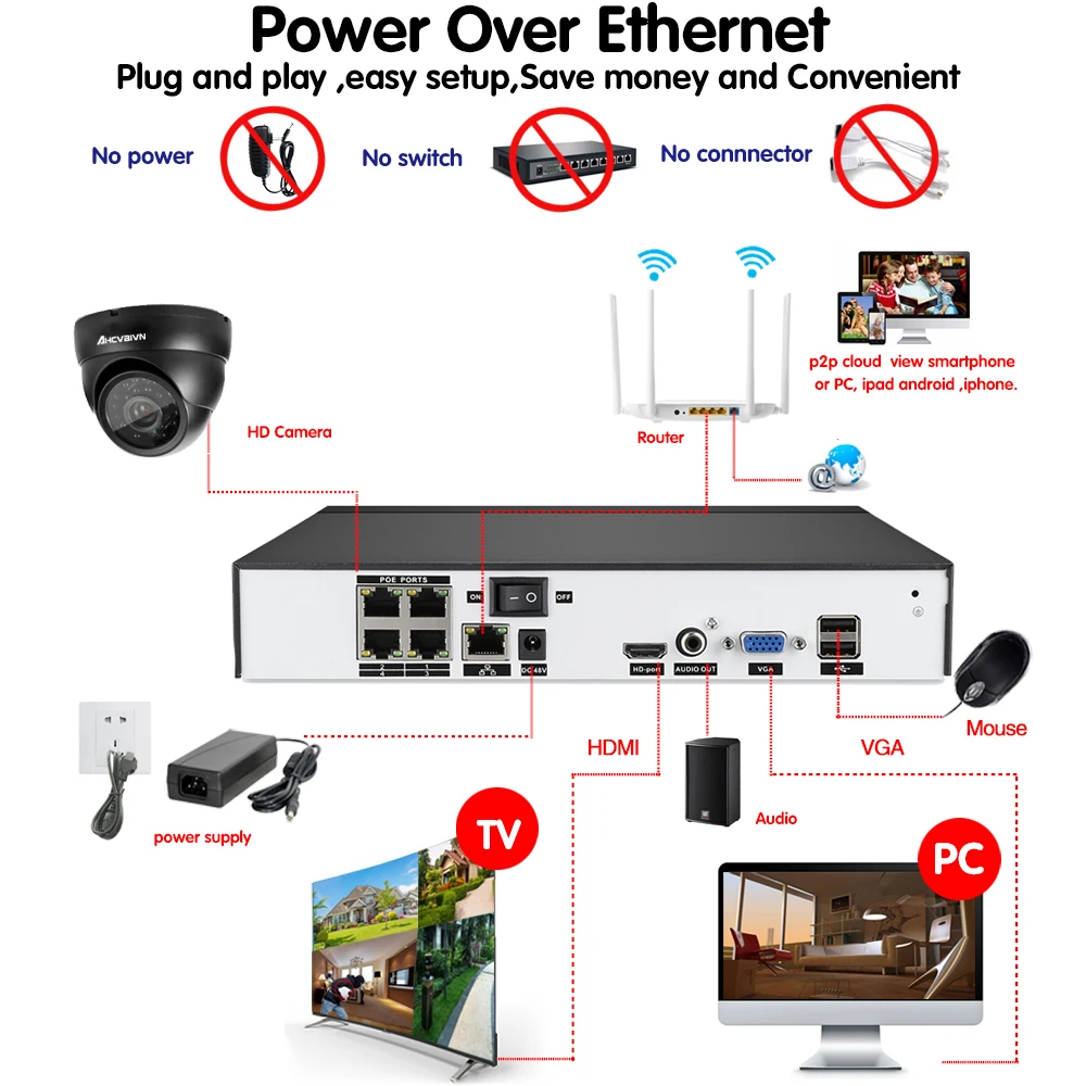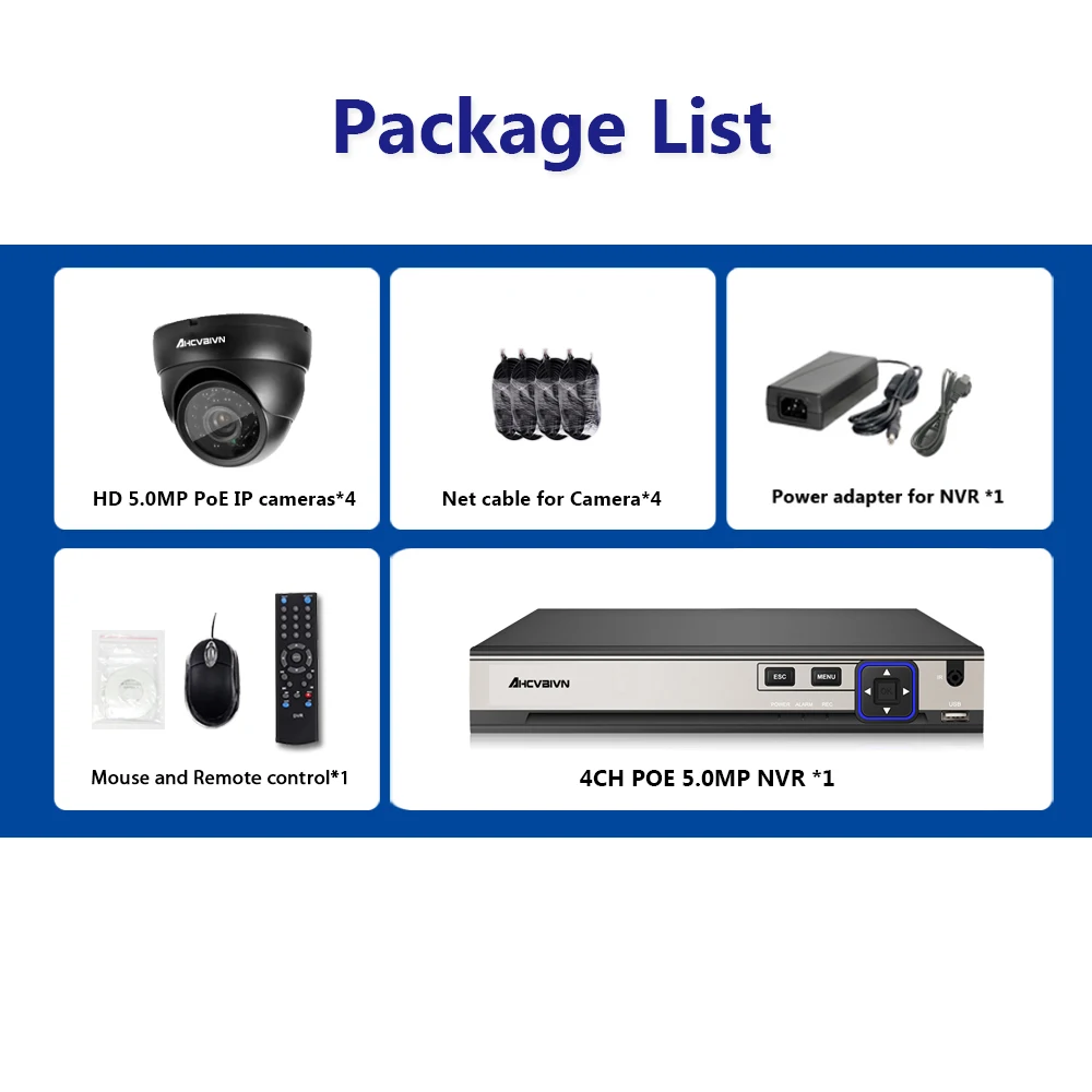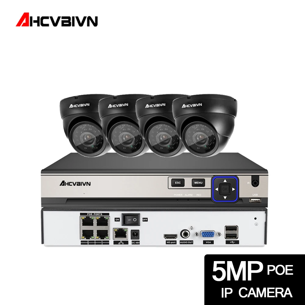 AHCVBIVN 5MP POE video surveillance kit 4CH NVR cctv camera system 4PCS 5.0 MP 2592*1944 Weatherpro
