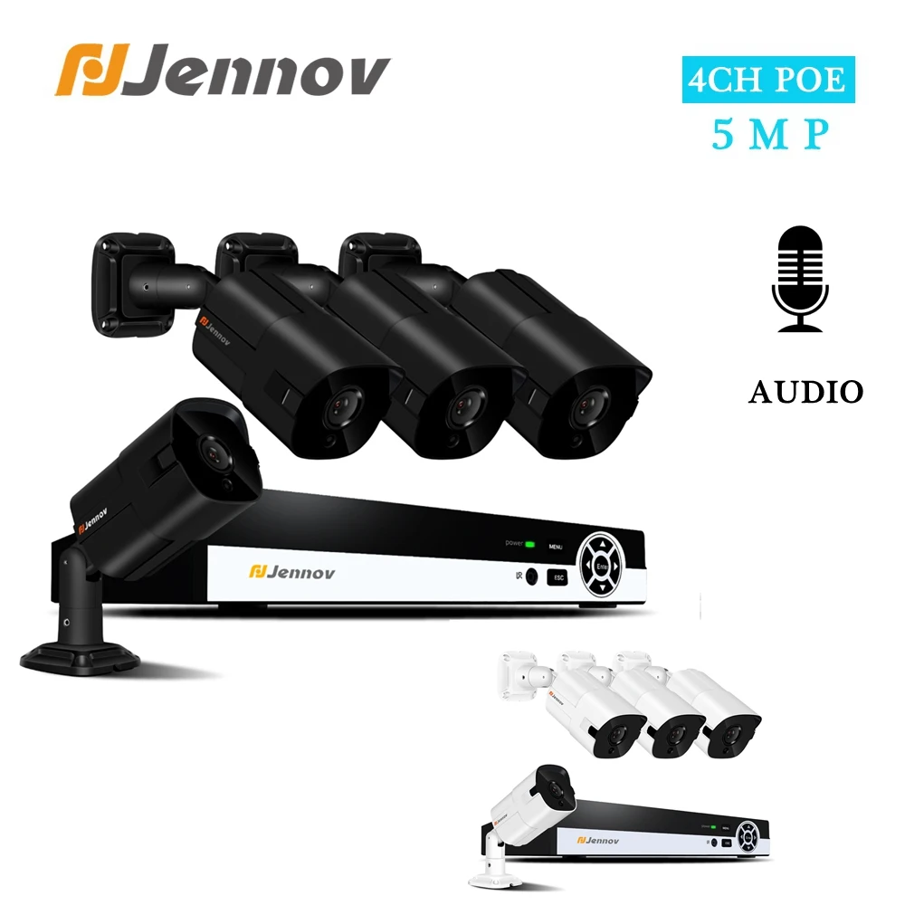 BEST SELLER Jennov 4ch 5MP H.265 CCTV Security NVR System POE Kit Outdoor Waterproof HD IP Camera Surveillance