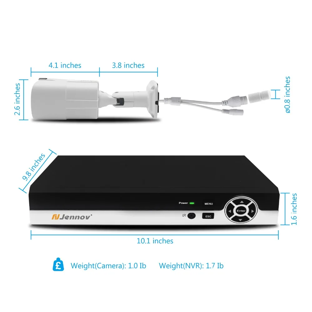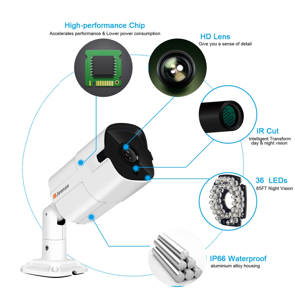Jennov 4ch 5MP H.265 CCTV Security NVR System POE Kit Outdoor Waterproof HD IP Camera Surveillance